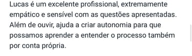 Meu propósito como psicólogo é acompanhar você no cuidado da sua saúde mental, oferecendo suporte durante sua jornada, para que possa identificar seus valores, reconhecer e validar suas emoções e aprender habilidades para viver de acordo com a vida que deseja.