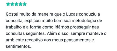 Na primeira sessão, vamos conversar sobre as questões que te levaram a buscar terapia, conhecer sua história de vida e rotina atual, bem como entender o que já fez para lidar com sua queixa, para que assim eu possa compreender as suas necessidades e como posso te ajudar. Além disso, será enviado para você, um arquivo em PDF com todas as informações do processo comigo.